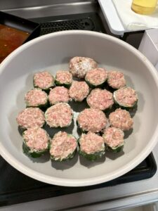 この日はピーマンの肉詰め。